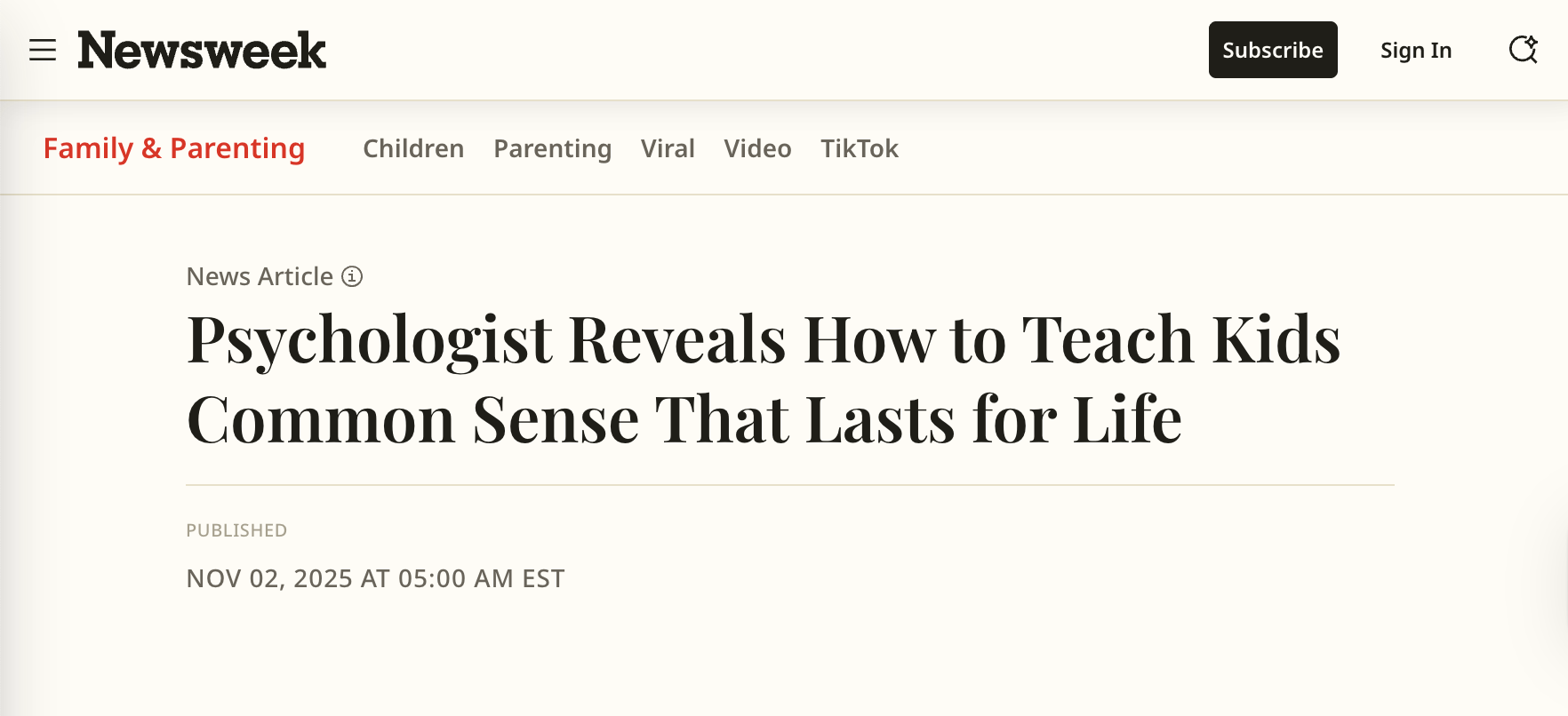 Article:Â Psychologist Reveals How to Teach Kids Common Sense That Lasts for Life