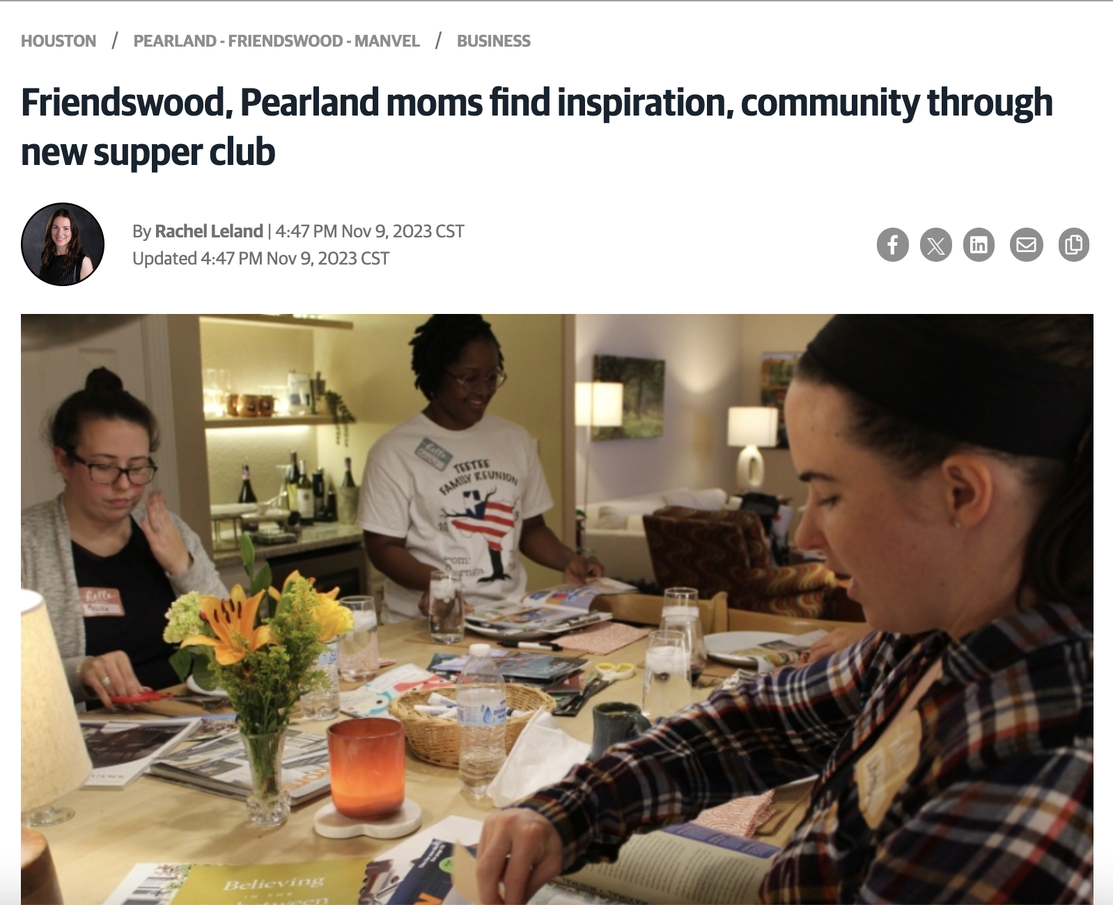 Article:Â Friendswood & Pearland Moms Find Inspiration and Community Through New Supper Club