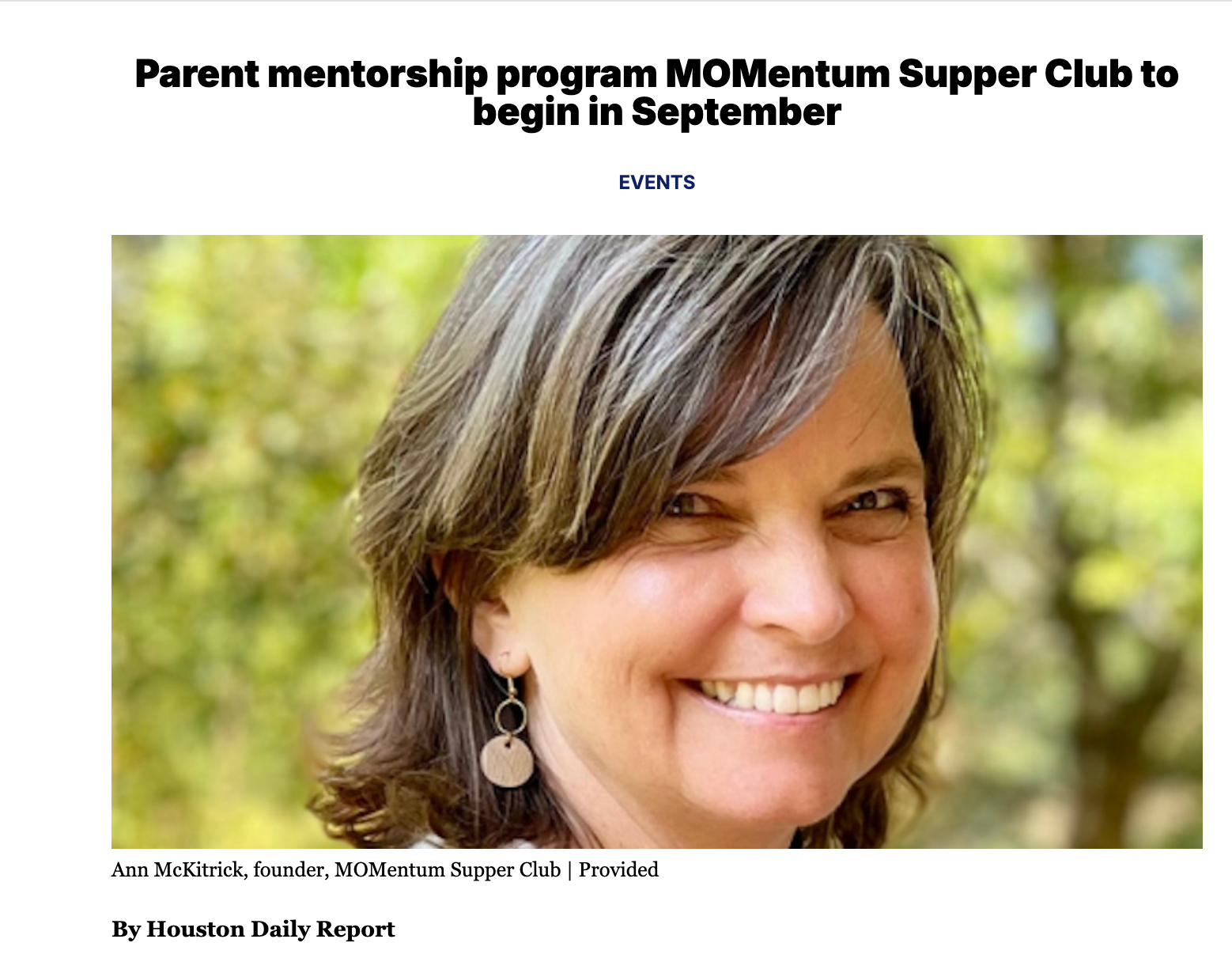 Article:Â Parent Mentorship Program MOMentum Supper Club to Begin in September